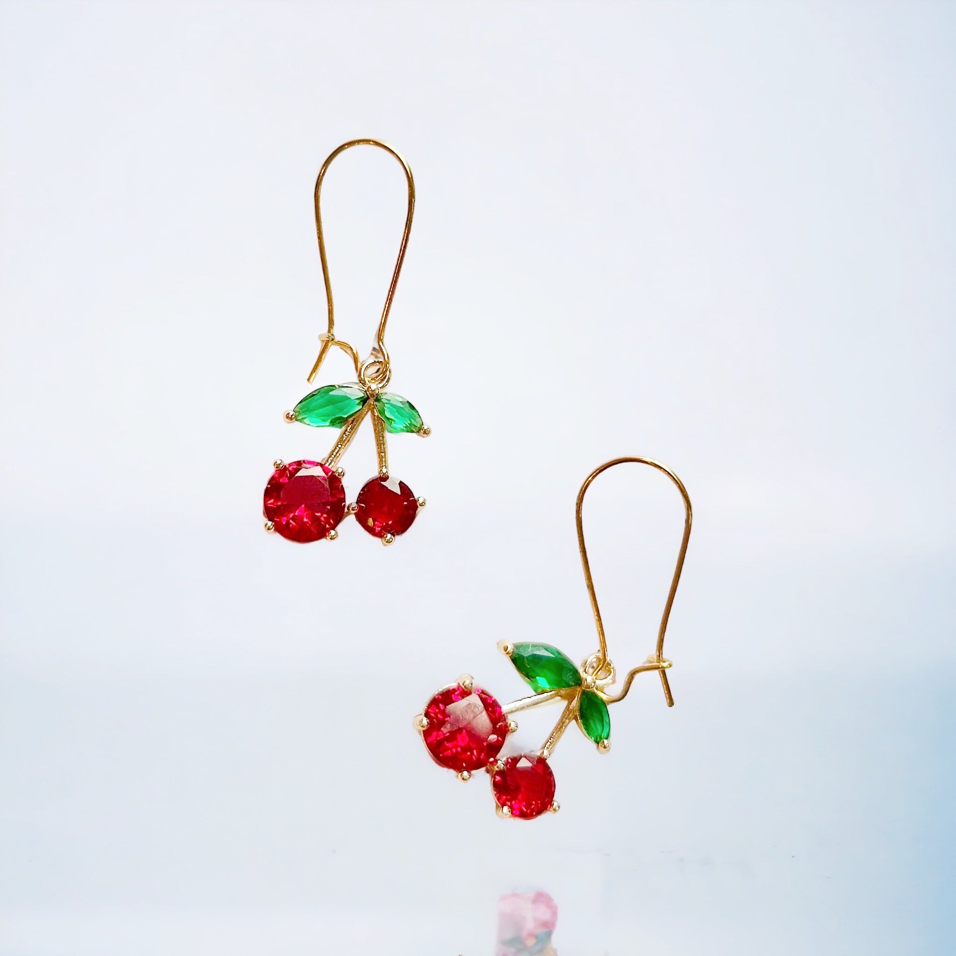Delightful crystal & gold cherry earrings with French hook. Free shipping and free gift are included.