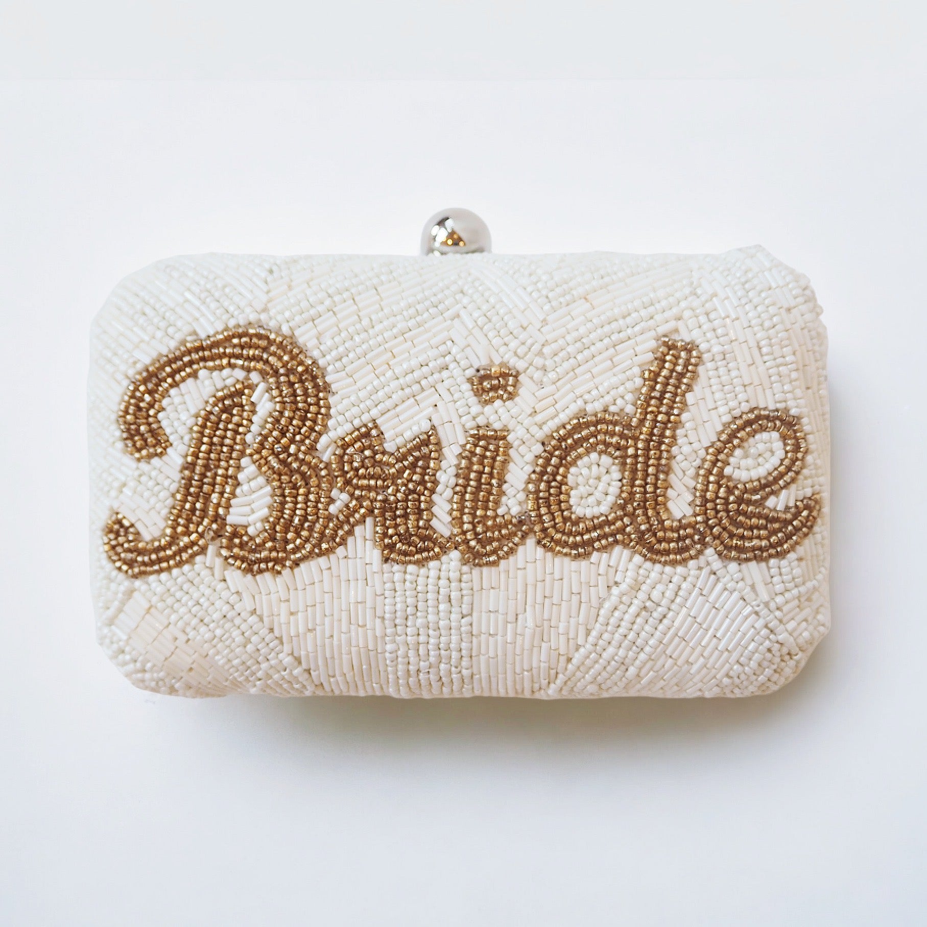 Say "I do" with style with these gold and white bridal clutch handbag. Each comes with an optional use chain strap.