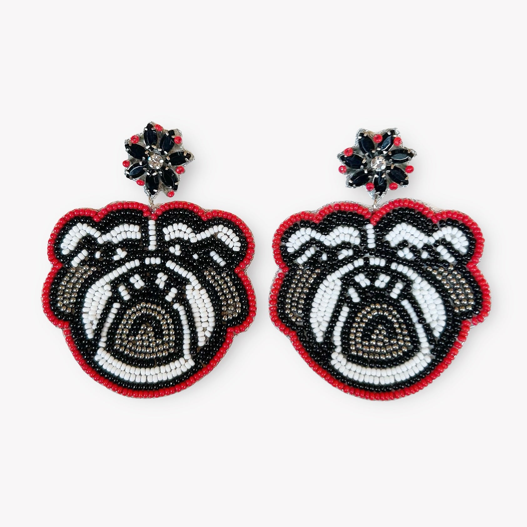 Showcase your Georgia Bulldogs pride with a touch of sparkle and elegance with our Beaded Bulldog Earrings with Sparkly Top. These stunning earrings feature a beautifully crafted bulldog design made from high-quality beads, perfectly capturing the fierce and proud spirit of the Bulldogs.