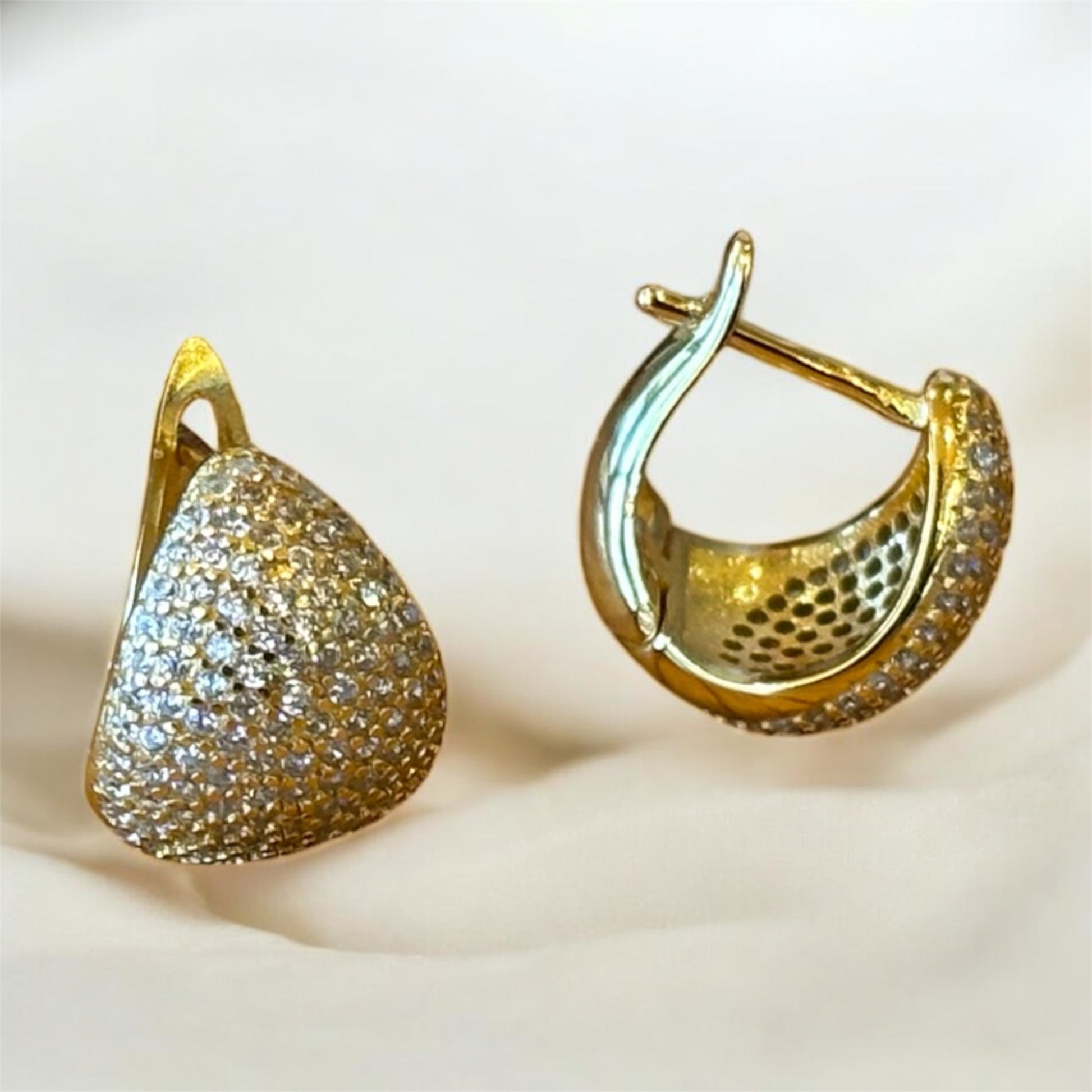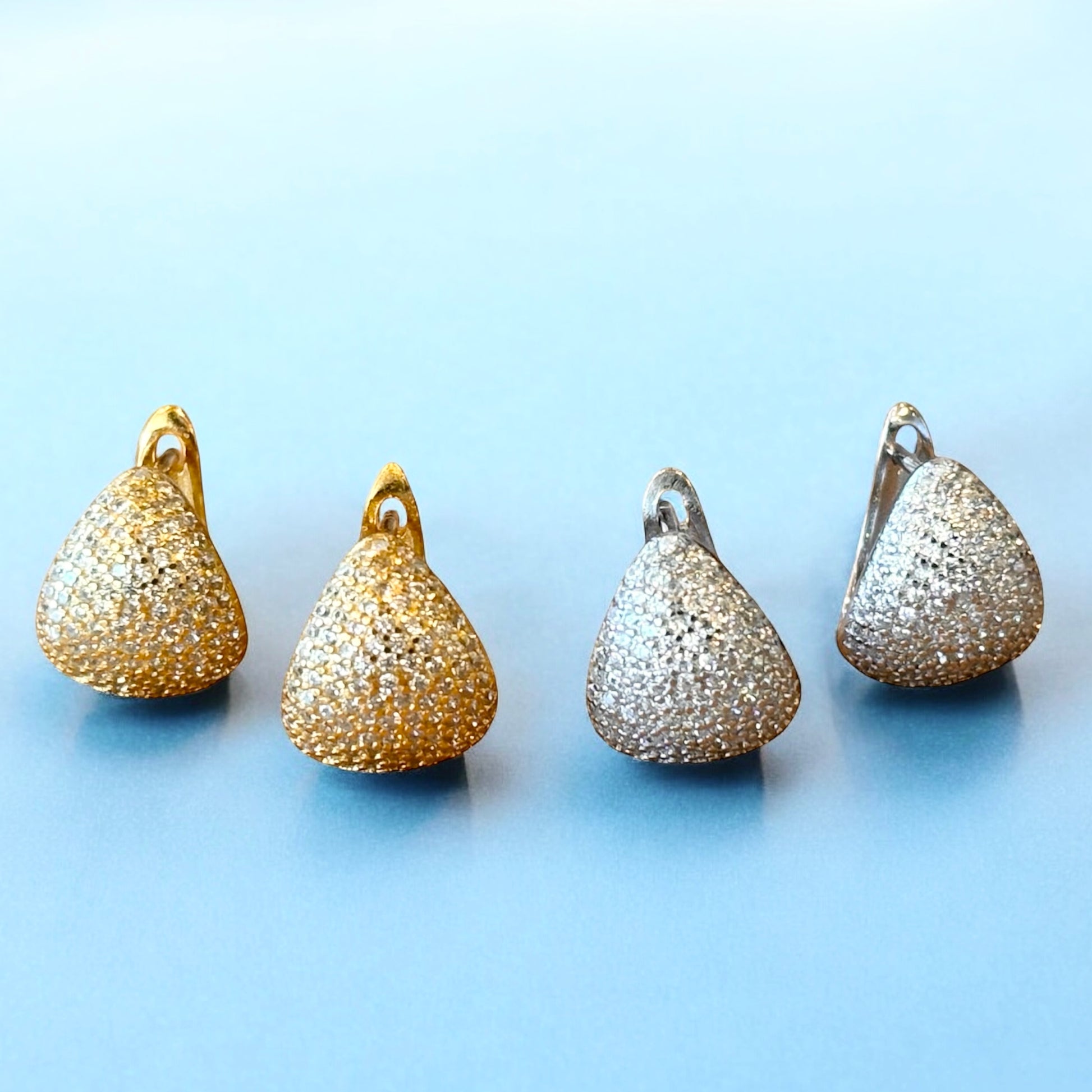Available in silver pavé diamond and gold pavé diamond, each pair catches the light with effortless brilliance, adding just the right amount of sparkle to your stack or stand-alone style.Timeless, versatile, and endlessly wearable — these are the kind of subtle statement that speaks volumes.