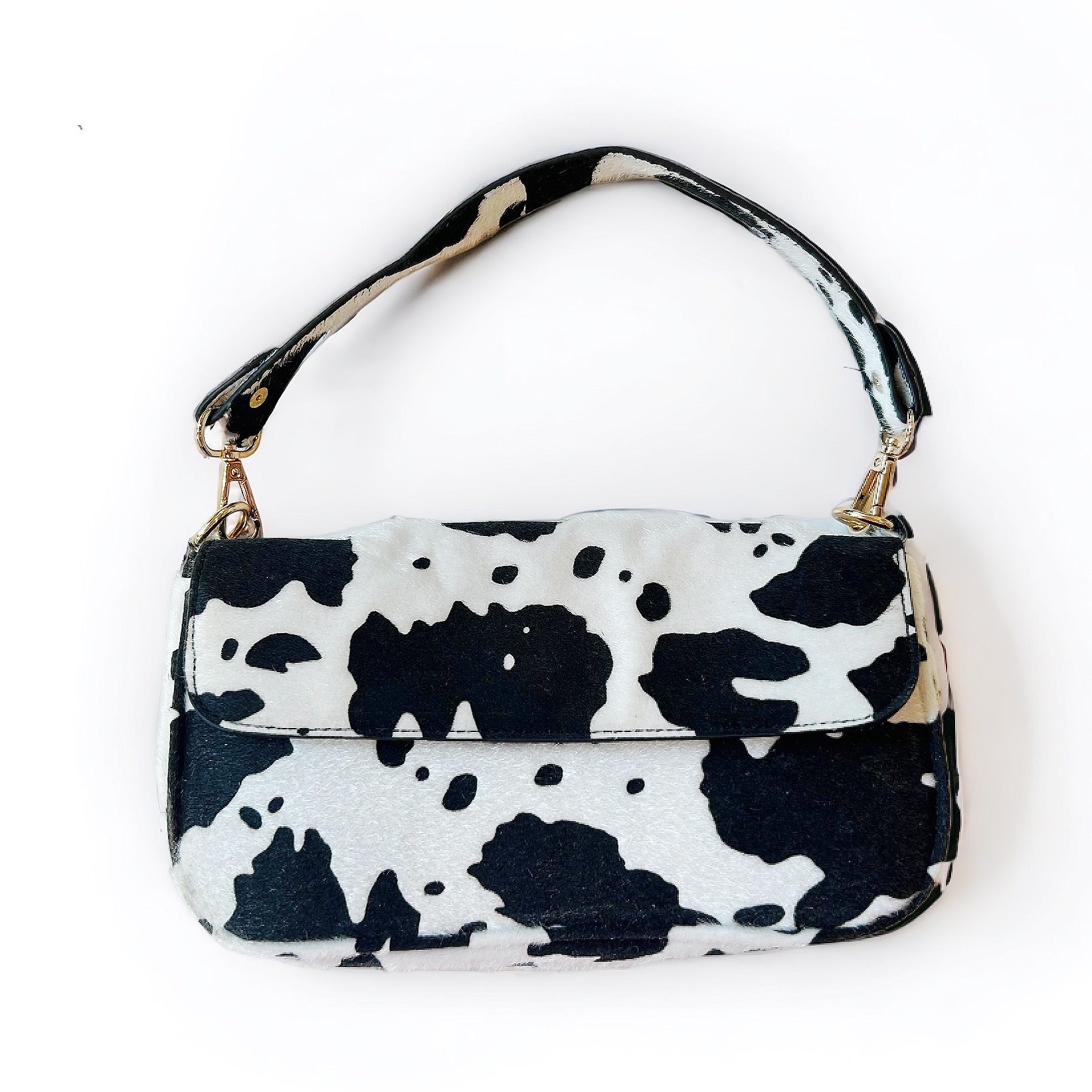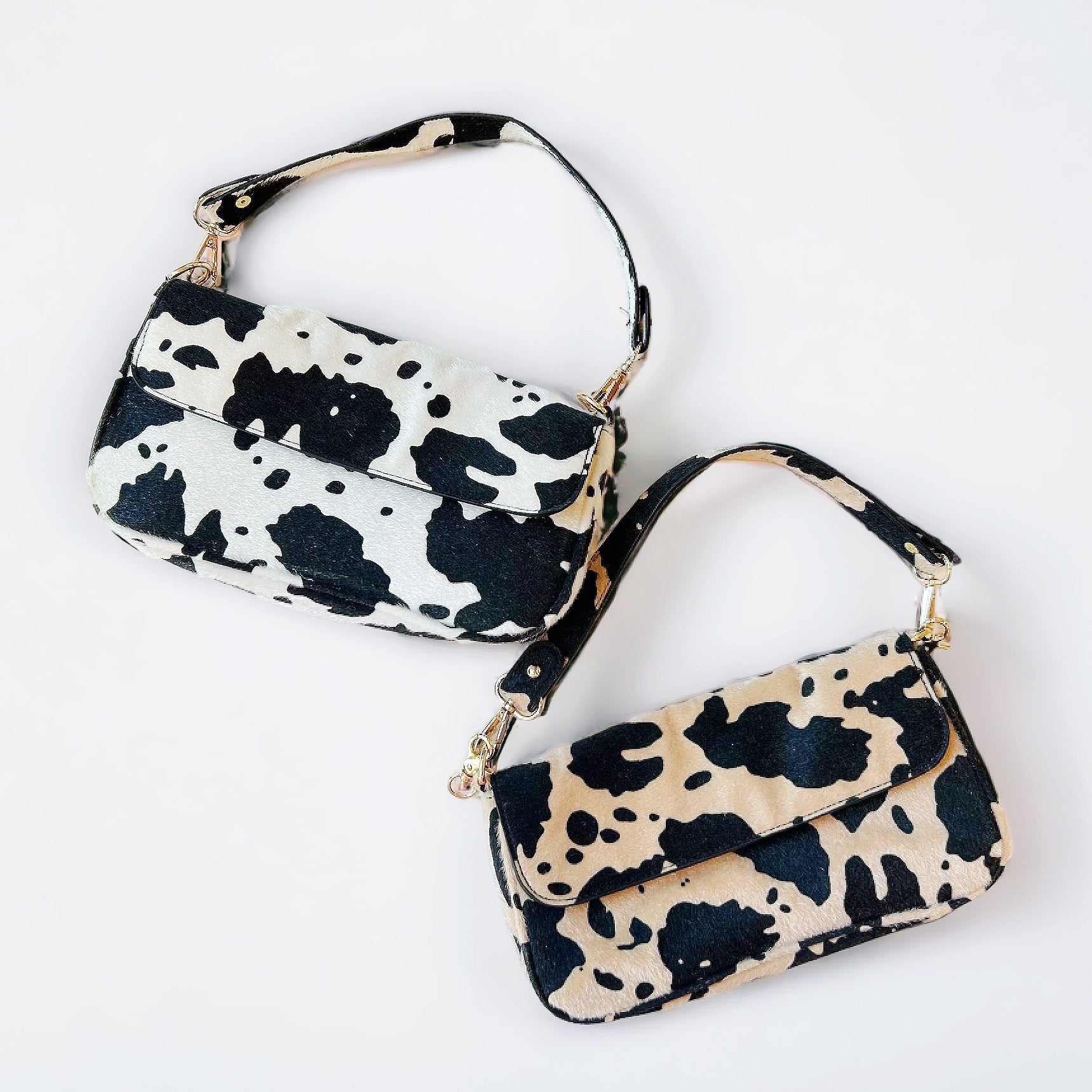 Elevate your accessory game with the eye-catching Cowprint Purse. Order yours today and carry your essentials in style!