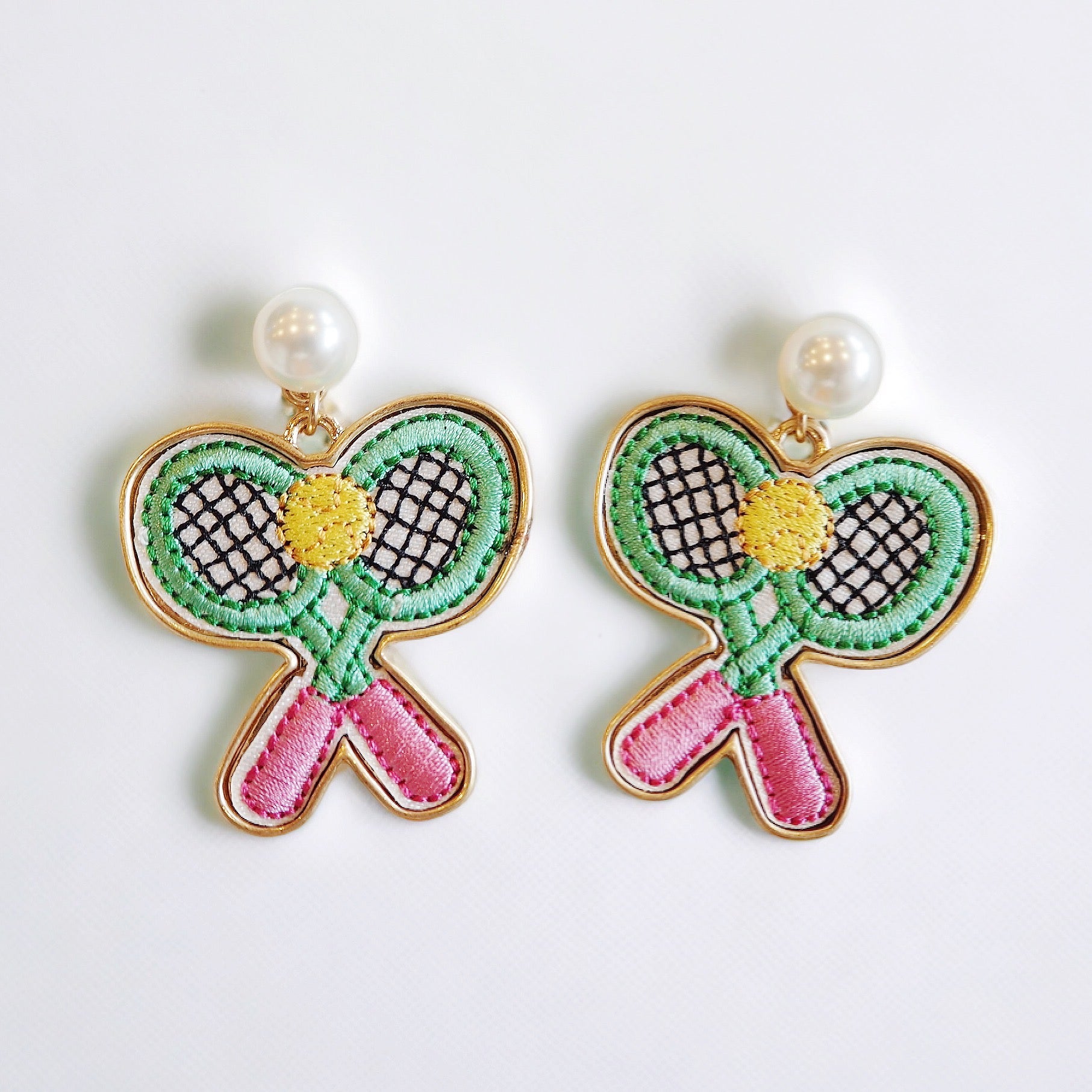 Hey, tennis lovers! These super cute embroidered tennis racket earrings are for you!
