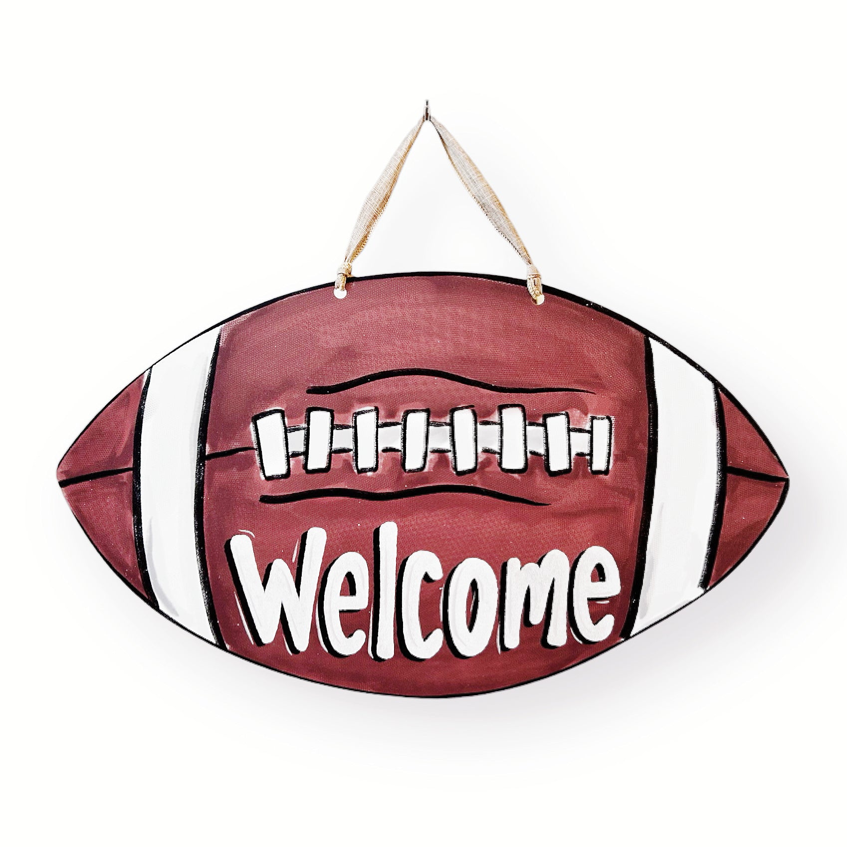 Welcome guests with a winning touch using the Football Welcome Door Hanger from Home Malone. This charming door hanger is the perfect addition for any football enthusiast, designed to make a bold statement as visitors arrive. Crafted with high-quality materials, it is built to endure various weather conditions while keeping its vibrant and inviting appearance.