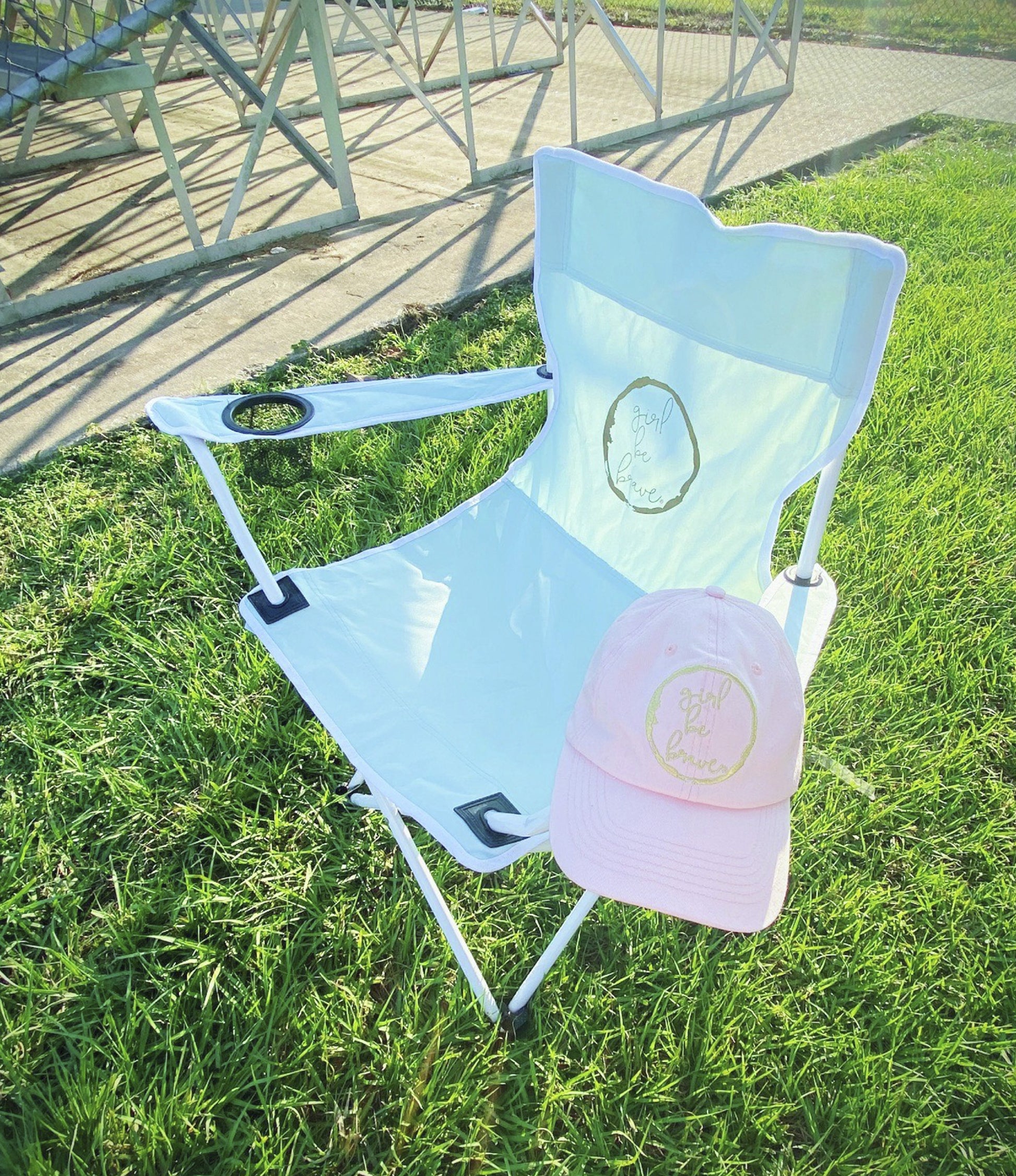 The Girl Be Brave Travel Chair has arrived! Its lightweight and compact design make this chair an easy companion to your day at the park, beach or where ever else life takes you.