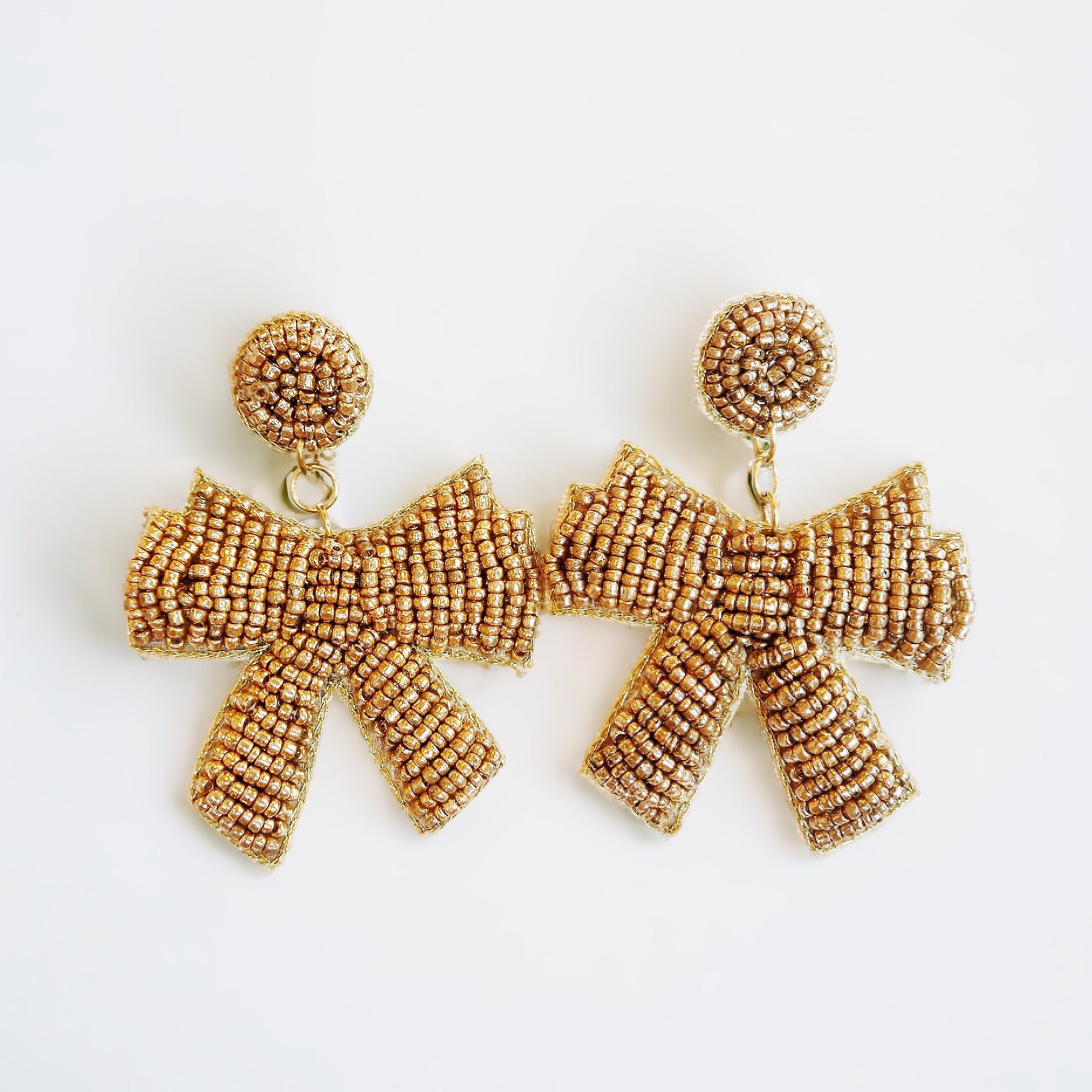 Gold Beaded Bow Earrings