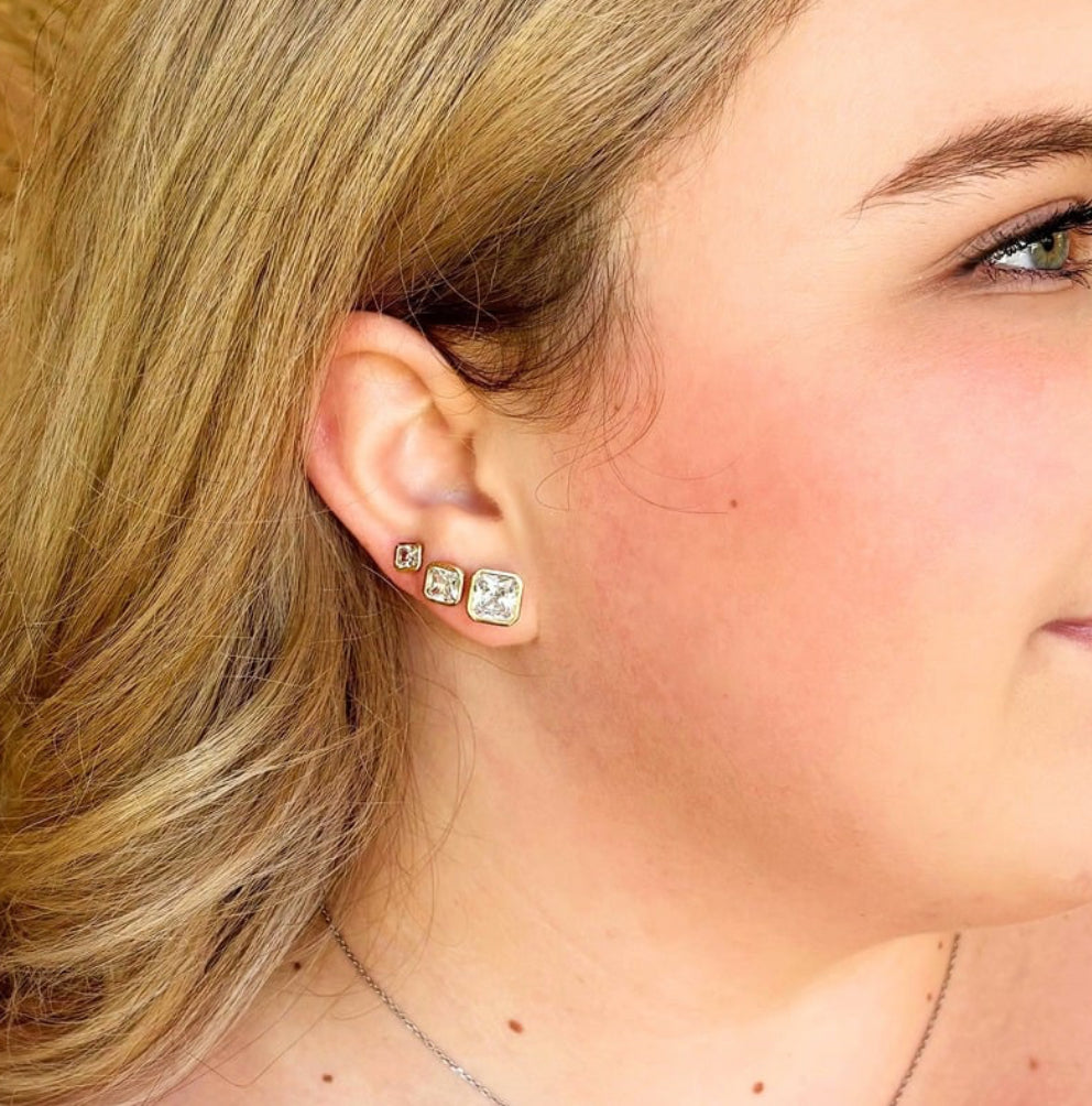 Refined elegance meets timeless design in our Gold Bevelled Diamond Studs — a striking accessory crafted to elevate any look. These square diamond studs are set in gleaming gold and feature subtly bevelled edges that add a modern dimension to their classic silhouette.
