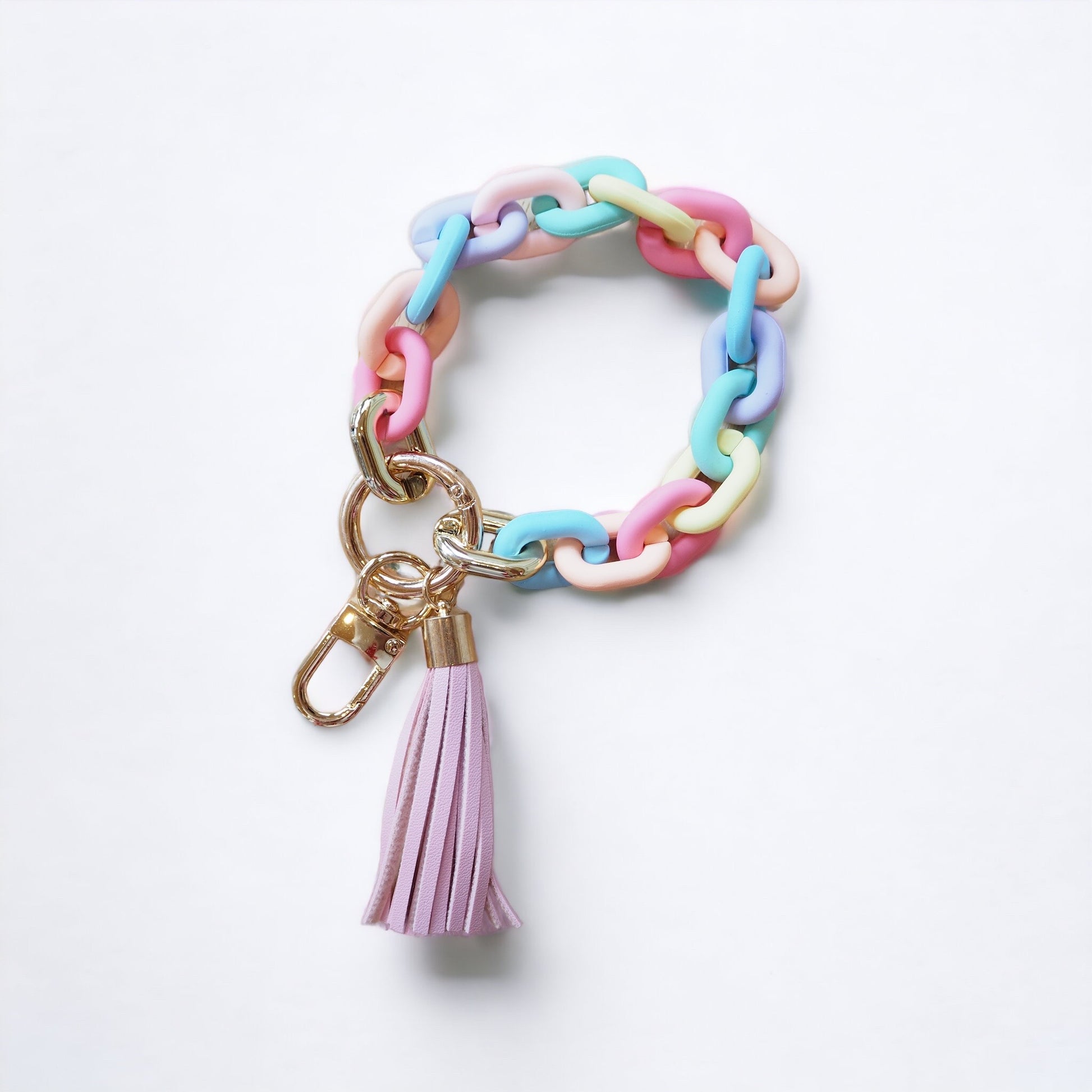 Introducing our Jumbo Chain Multicolored Keychain – a compact accessory that packs a punch of style! This keychain features oversized links in a vibrant pink hue, adding a pop of color to your everyday essentials. The jumbo chain design not only looks trendy but also ensures that your keys are easy to spot in your bag or pocket. Elevate your key game with this chic and practical accessory – because small details can make a big impact!