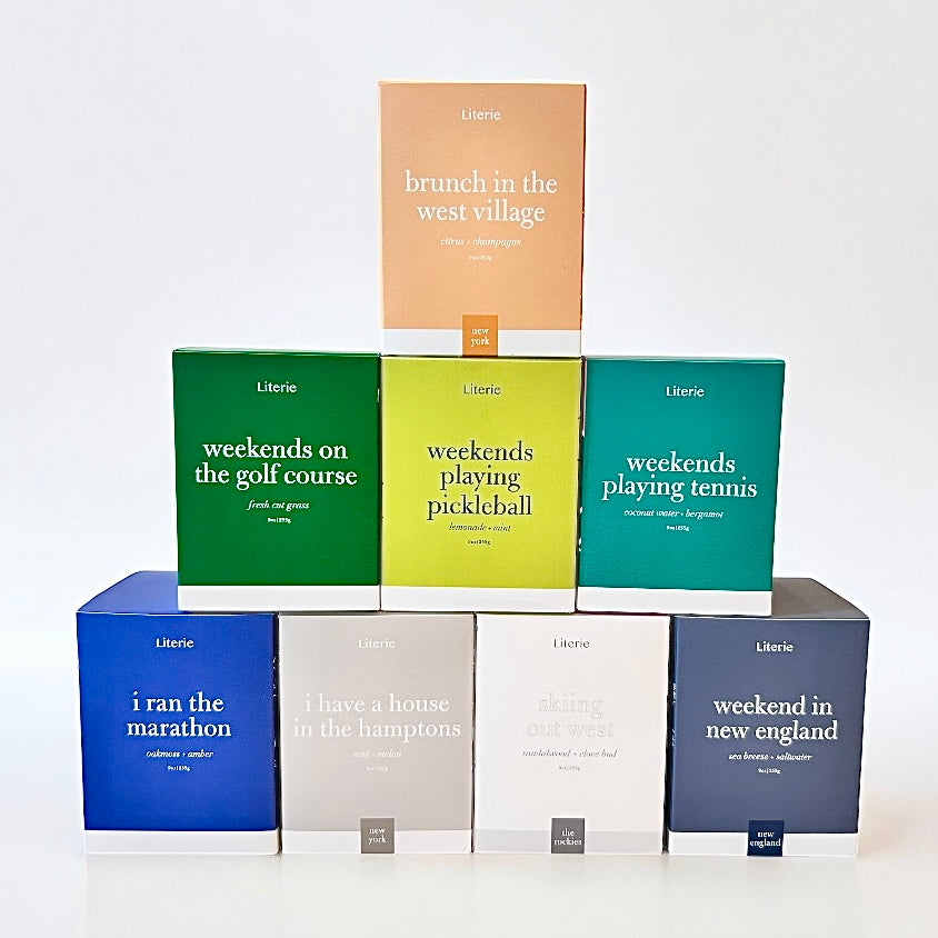 From I Have a House in the Hamptons to Weekends Playing Pickleball, Weekends on the Golf Course, or I Ran the Marathon, Literie captures the spirit of adventure, leisure, and urban charm in every burn. They're more than candles—they’re souvenirs of a lifestyle.