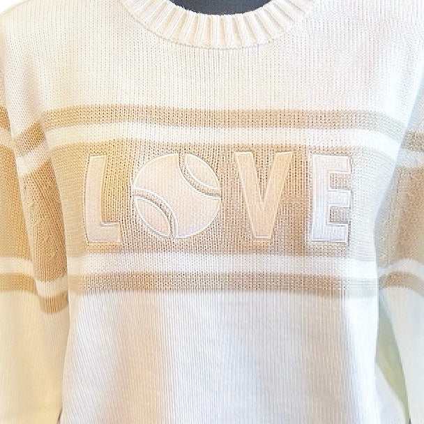Introducing our Cream and White Tennis-Themed Sweater, a delightful fusion of style and sporty charm that's sure to make a statement both on and off the court.