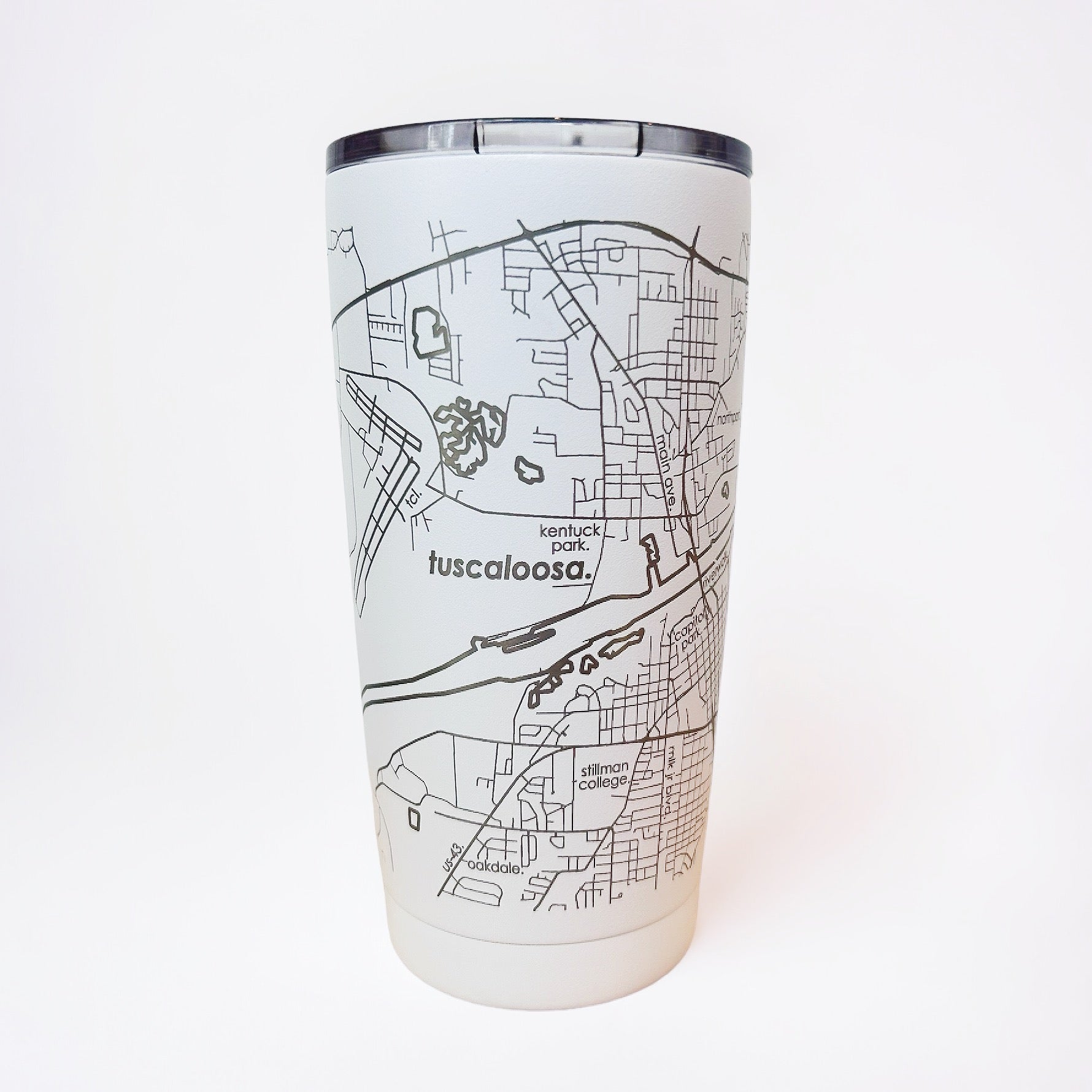 Introducing our Tuscaloosa-themed Insulated Tumbler, the perfect blend of style and practicality for those who love this vibrant city. Crafted from premium stainless steel with double-wall insulation, this tumbler keeps your beverages at the ideal temperature for longer, whether you're sipping on a hot coffee during a morning commute or enjoying a refreshing iced tea on a sunny afternoon. Adorned with a charming map of Tuscaloosa, this tumbler celebrates the city's unique landmarks and culture, making it a delightful addition to your drinkware collection or a thoughtful gift for any Tuscaloosa enthusiast. With its spill-resistant lid and 20oz capacity, it's perfect for staying hydrated on the go or enjoying your favorite beverages at home. Embrace the spirit of Tuscaloosa with every sip using our Insulated Tumbler.