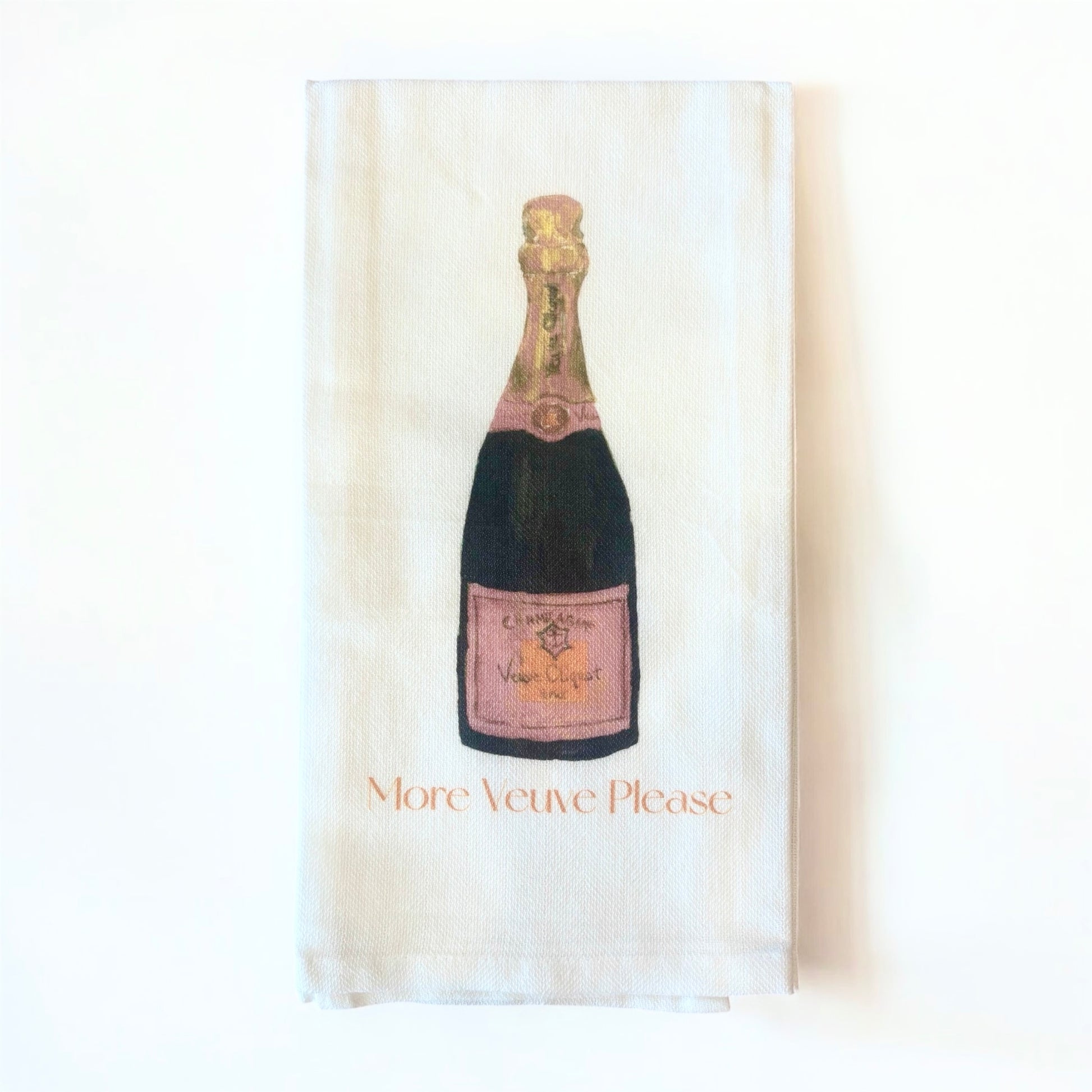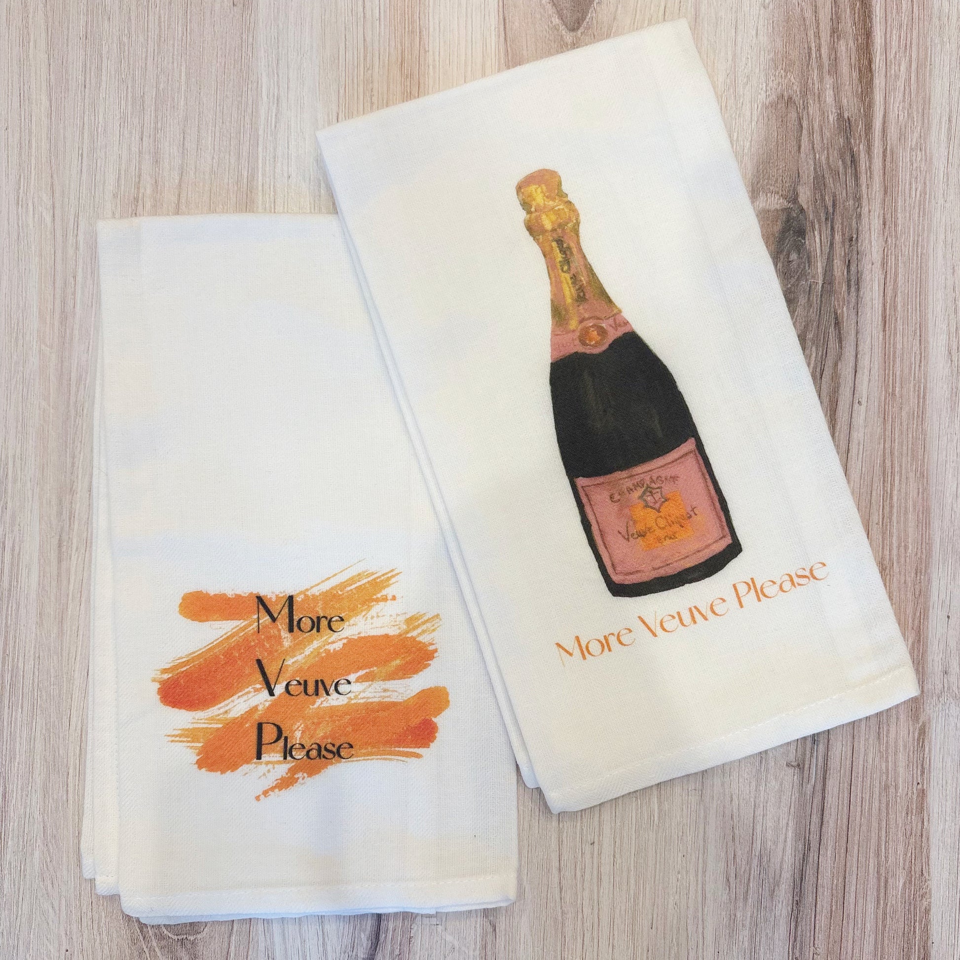 Ideal for champagne enthusiasts or anyone who appreciates the finer things in life, the "Veuve Rosé Bottle Kitchen Towel" makes a thoughtful gift or a stylish addition to your own home. Embrace the spirit of indulgence and elevate your kitchen with this luxurious accessory.
