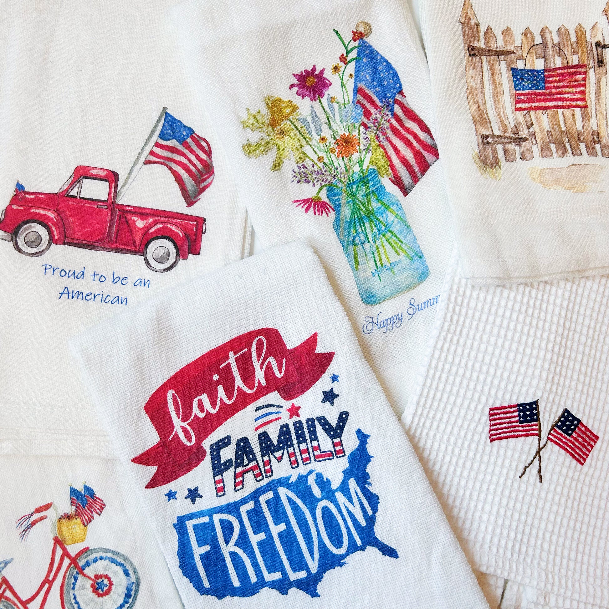 Meticulously crafted with premium materials, these towels exude both durability and absorbency, ensuring they stand up to the rigors of daily use while adding a touch of patriotic flair to your home. Whether you're preparing a festive feast for Independence Day or simply elevating your kitchen decor, our Patriotic Kitchen Towels embody the essence of American pride and heritage in every stitch.