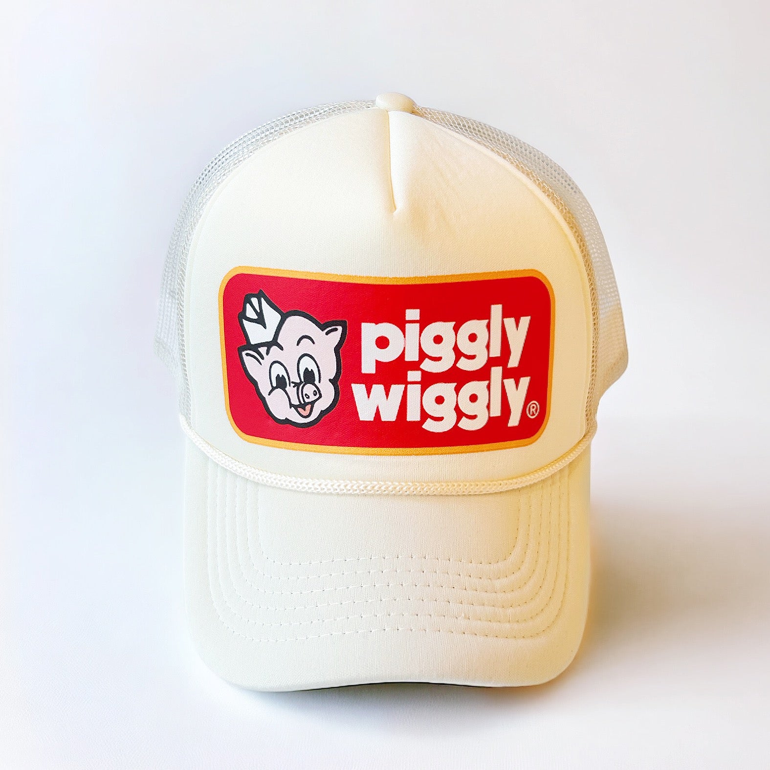 Embrace the spirit of fun and adventure with our Cream-Colored Piggly Wiggle Hat – your go-to accessory for style and comfort wherever life takes you.