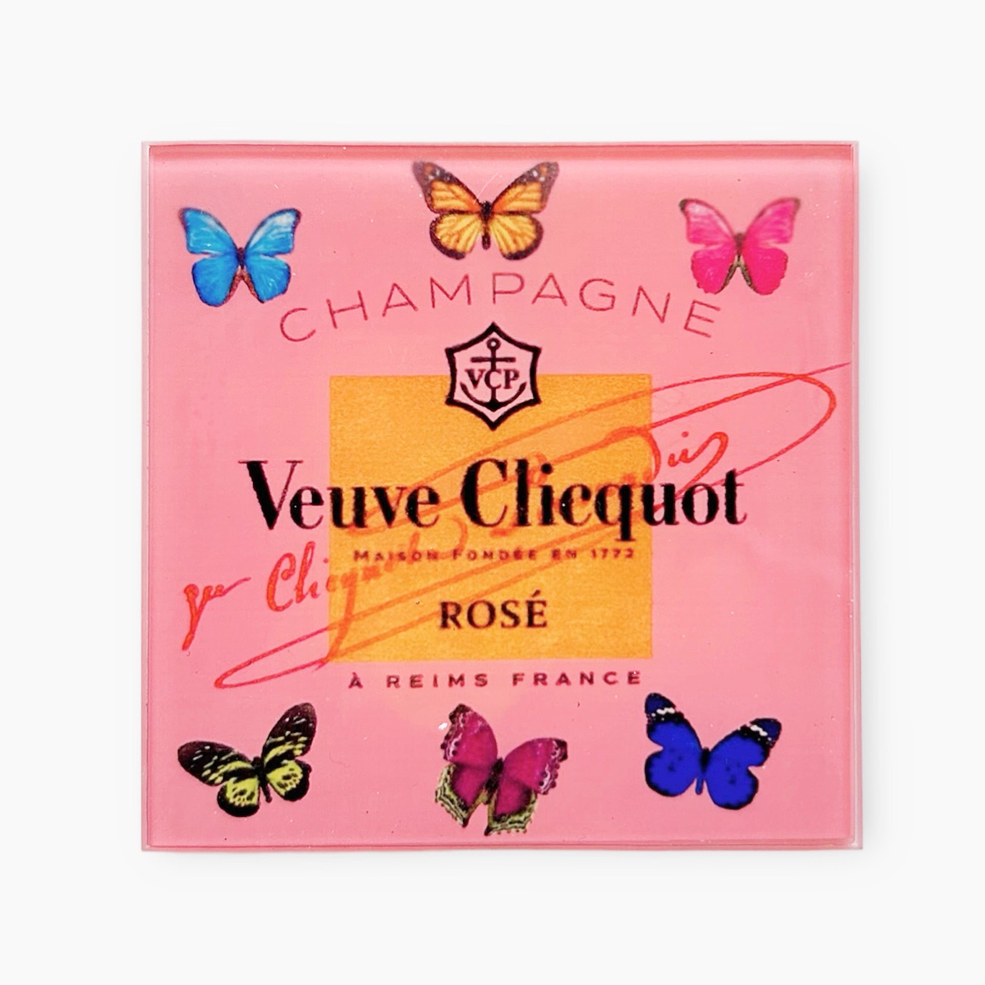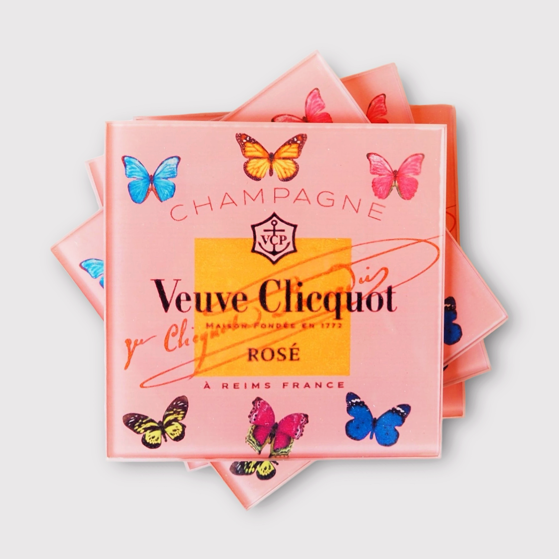 Whether you’re hosting a lavish celebration or enjoying a quiet evening with a glass of champagne, the Pink Glass Butterfly Veuve Champagne Coaster Set adds a luxurious touch to your experience. This set also makes a thoughtful and elegant gift for weddings, anniversaries, or any special occasion.