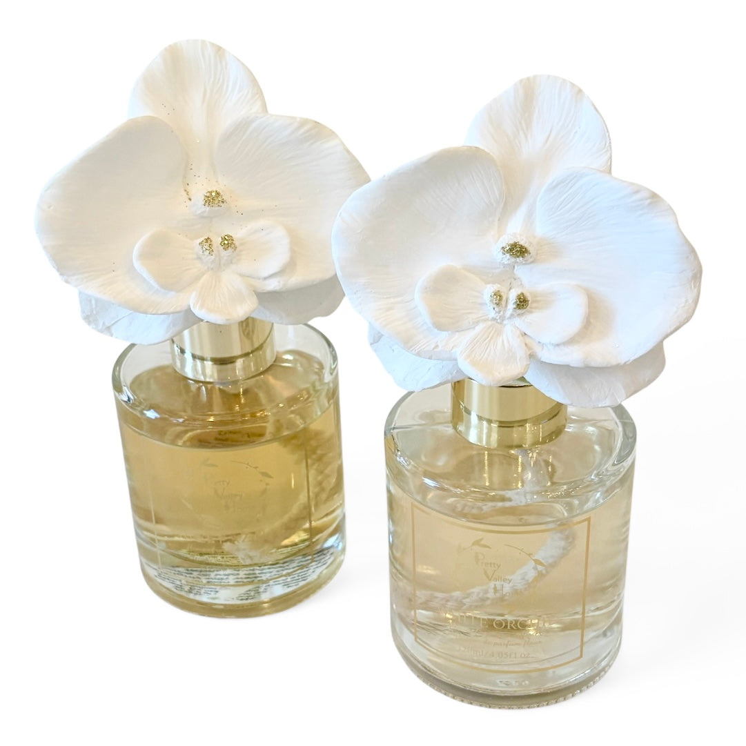 Features an elegant Orchid flower top that diffuses fragrance naturally