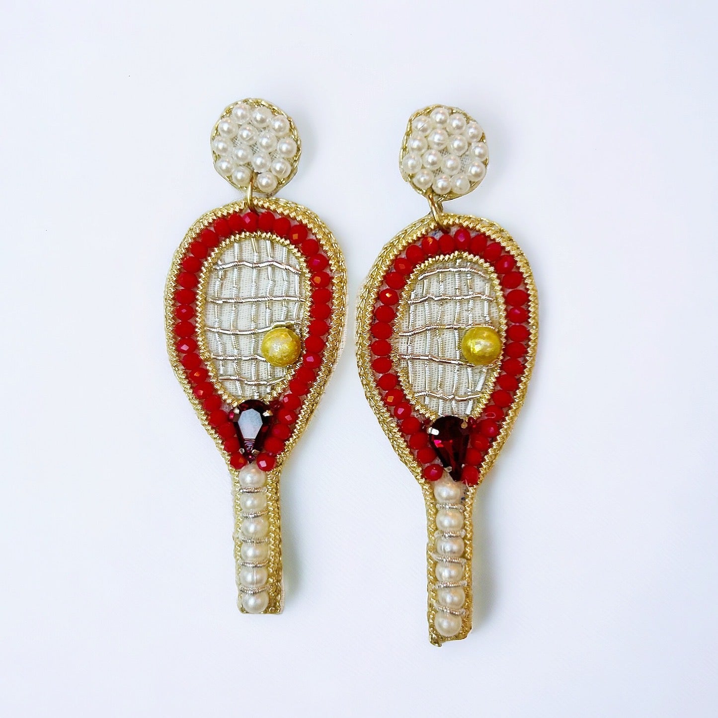 Lightweight and comfortable to wear, these earrings are perfect for tennis enthusiasts and fashion-forward individuals alike. Whether you're stepping onto the court or out for a night on the town, let these Ruby Tennis Racket Beaded Earrings elevate your style with their unique charm and allure.