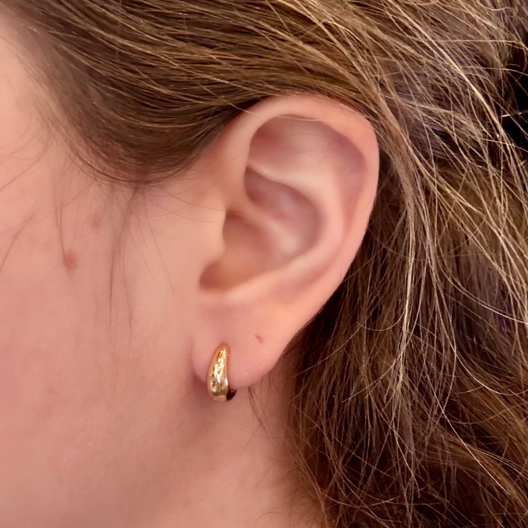 This sleek, fully clasping gold hoop is designed with a seamless snap closure that gives you the perfect blend of comfort, security, and effortless style. With no pole exposed and a smooth, continuous shape, it offers a modern, minimal look that goes with absolutely everything.