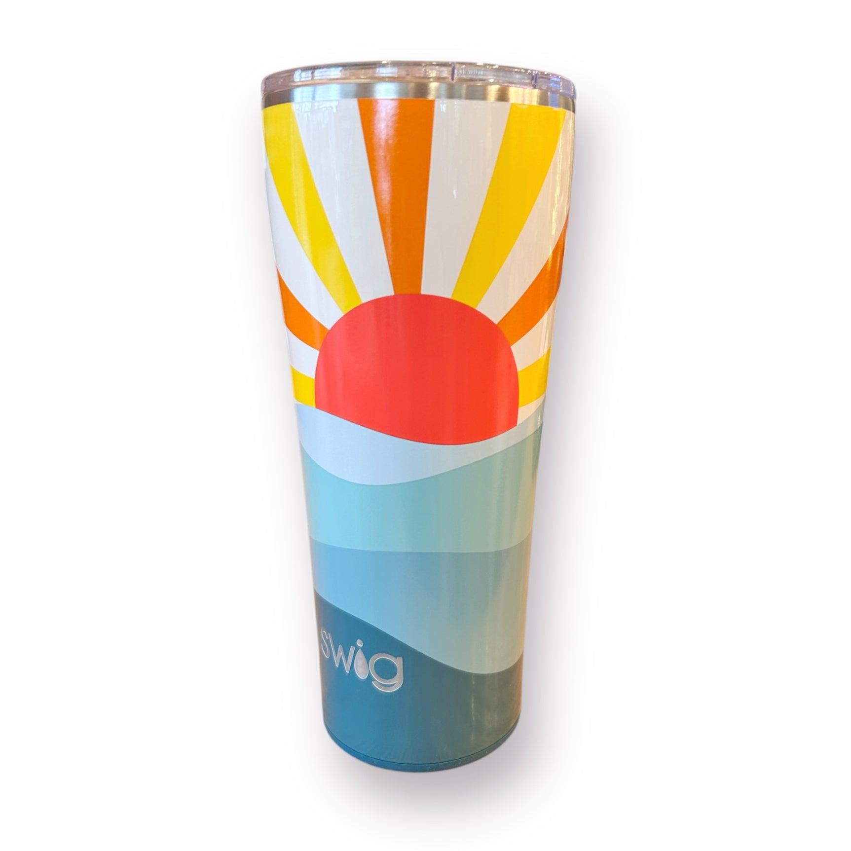 The Sunrise Swig Cup 32oz is an insulated, stainless steel tumbler designed to keep your drinks cold for up to 24 hours or hot for up to 6 hours. With its generous 32-ounce capacity, sweat-free exterior, and durable construction, it’s perfect for staying hydrated on the go. The ergonomic design includes a secure lid and straw for easy sipping, making it a stylish and functional companion for any activity.