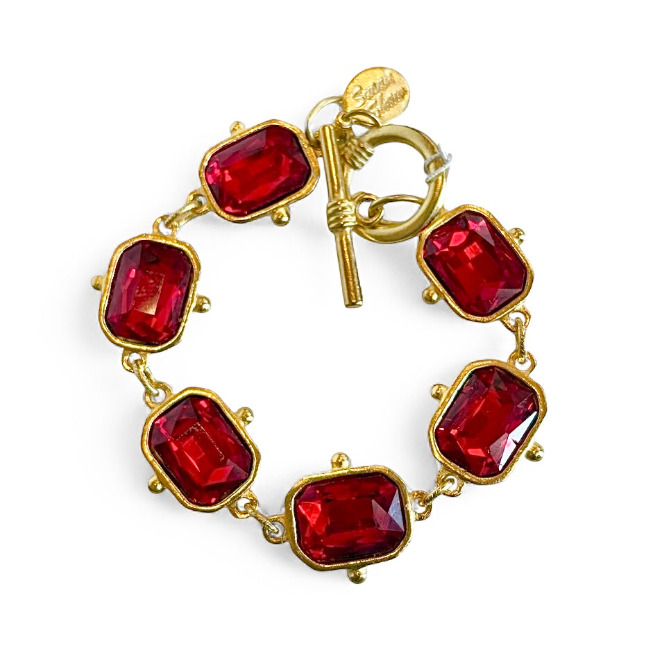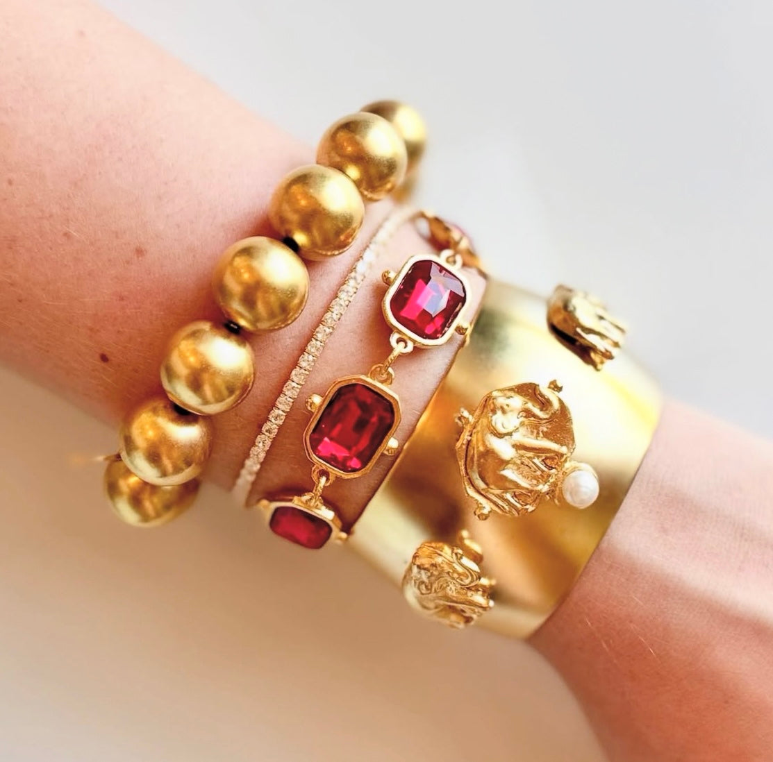 Whether you're dressing up a daytime outfit or adding a pop of bold color to your evening ensemble, this bracelet delivers timeless charm with a modern twist. Its brilliant red stones shimmer beautifully against the light, making it a standout addition to your wrist stack or a chic statement all on its own.