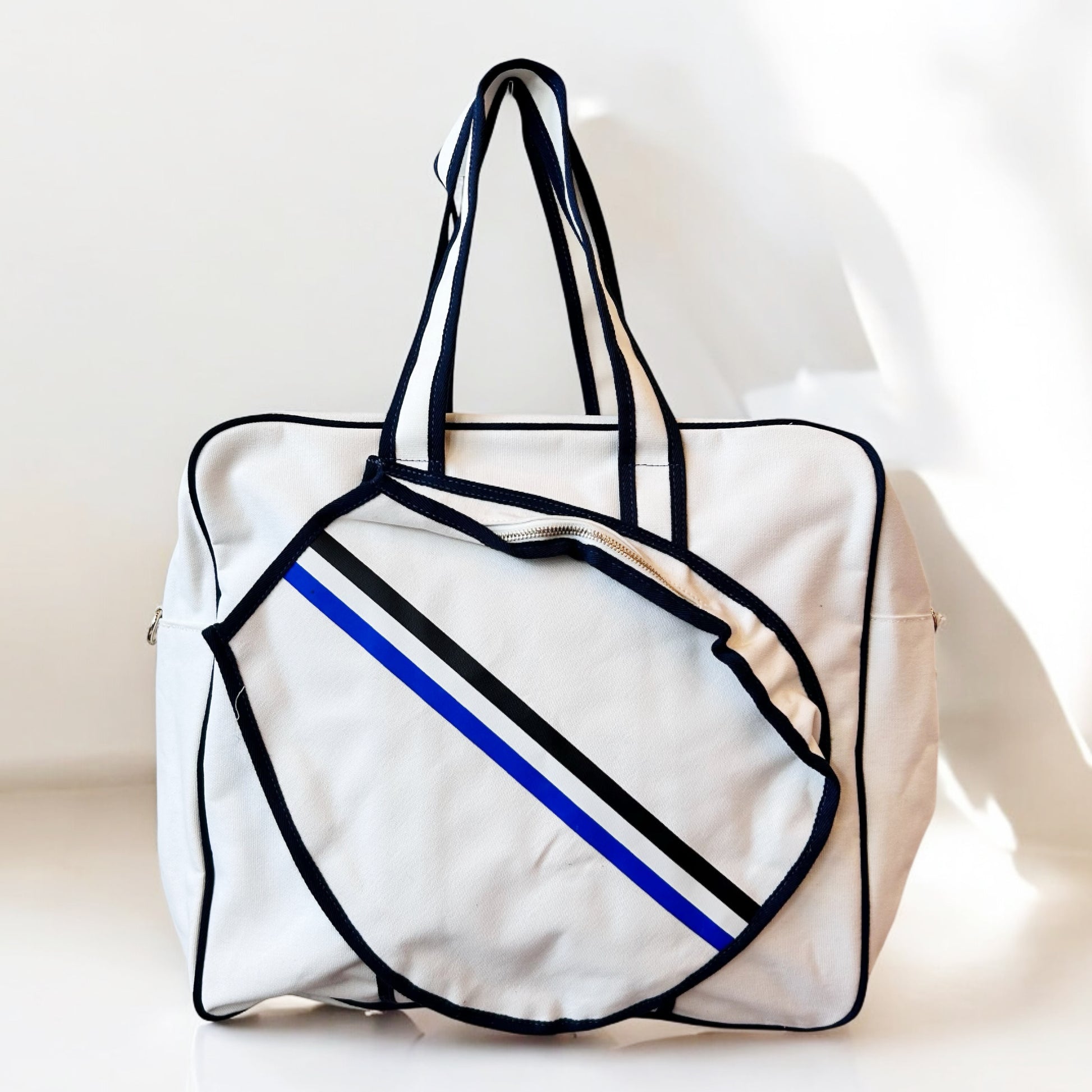 Serve up style and functionality with our Tennis Tote Bag, designed for players on the go. This chic and versatile tote features a convenient front pocket crafted to securely hold your tennis racket, making it easy to transport to and from the court. With a spacious interior, there’s room for all your essentials—extra balls, water bottles, towels, and more.