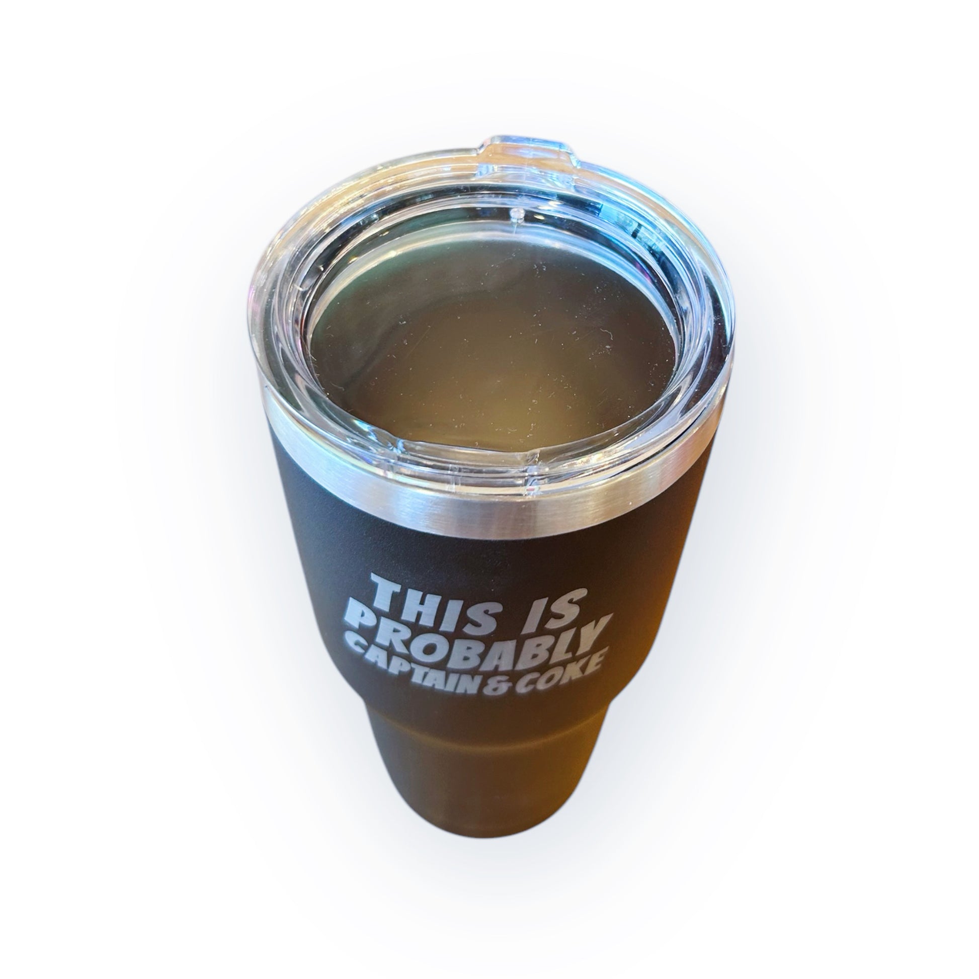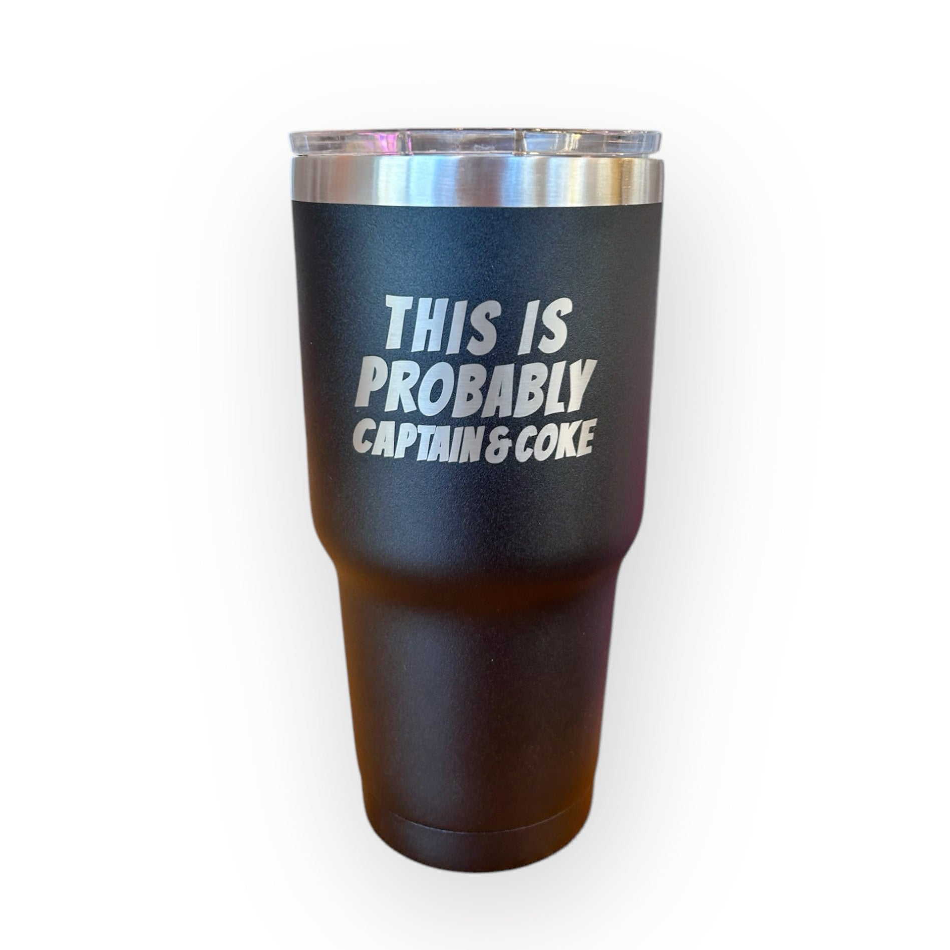 Sip in style with the "This Is Probably Captain & Coke" Tumbler, the perfect drinkware for anyone who enjoys the classic combo of rum and cola. With its fun and cheeky design, this tumbler is the ideal companion for your next relaxed evening or social gathering. Whether you're mixing up your favorite cocktail at home or enjoying it on the go, this tumbler keeps your drink cold and your mood light. Featuring bold lettering and a playful nod to your drink of choice, it’s a must-have for anyone who loves a good rum and coke, and appreciates a little humor with their sip.