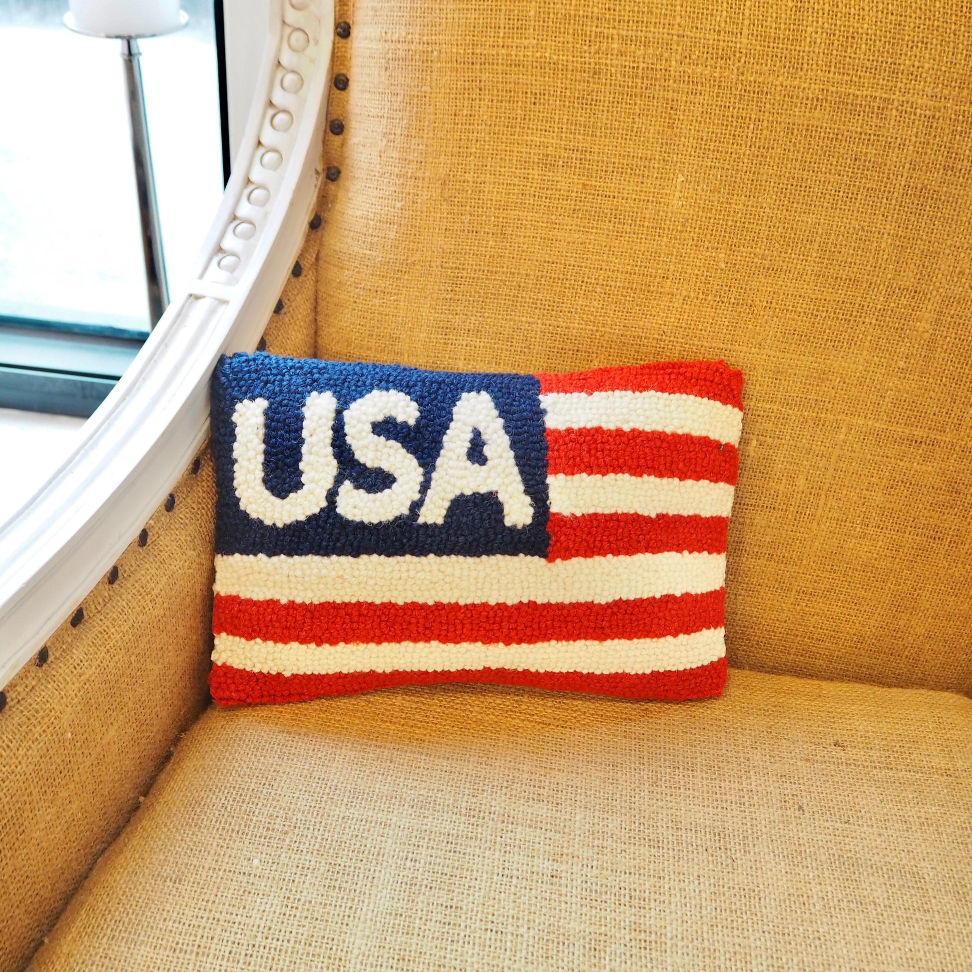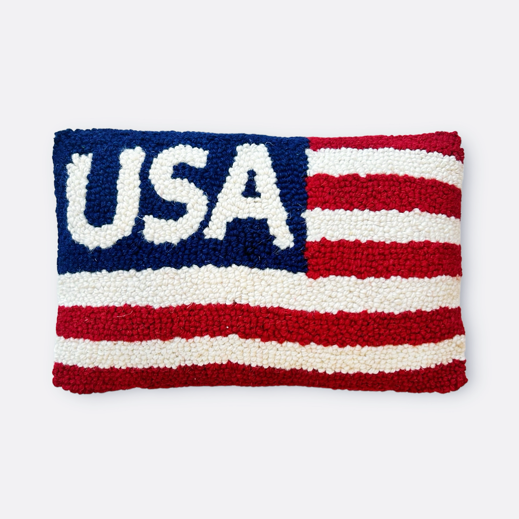 Add a touch of patriotic charm to your home décor with our USA Flag Hooked Pillow. Crafted with meticulous detail, this small pillow features the iconic stars and stripes in vibrant colors, perfect for showcasing your American pride. Whether placed on a sofa, armchair, or bed, it's a stylish accent that celebrates the spirit of the USA.