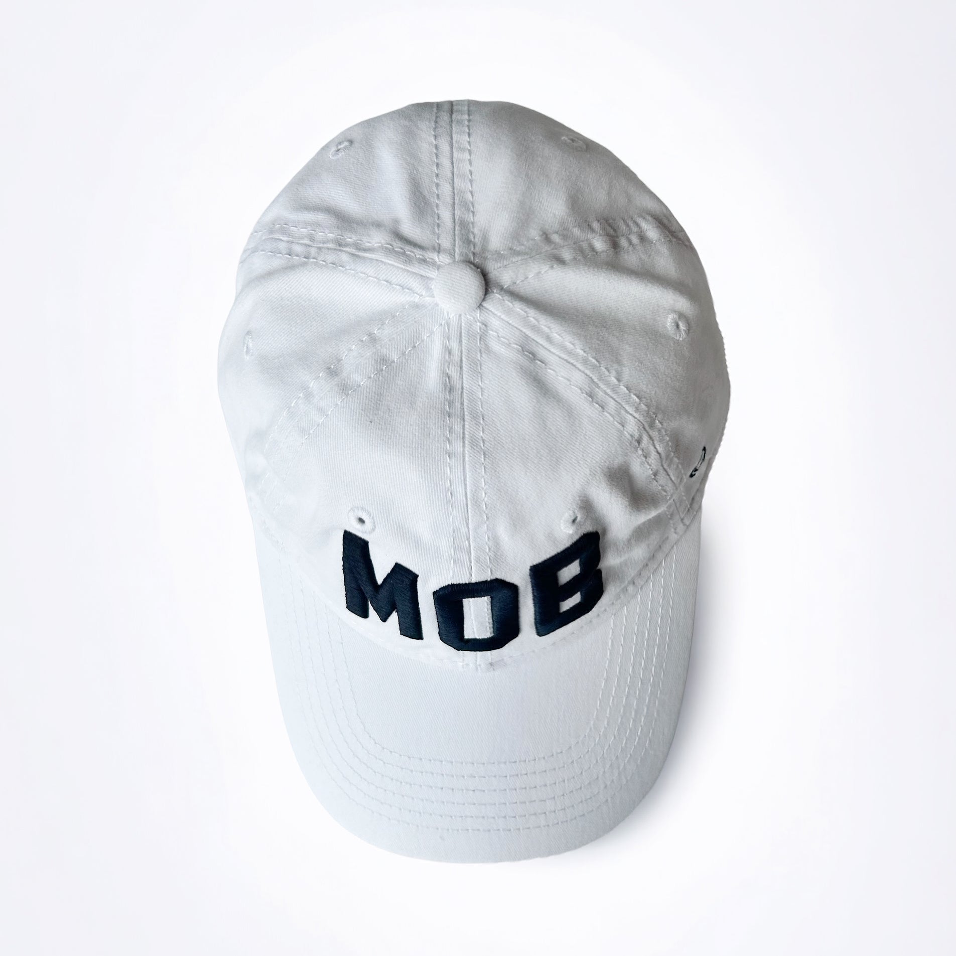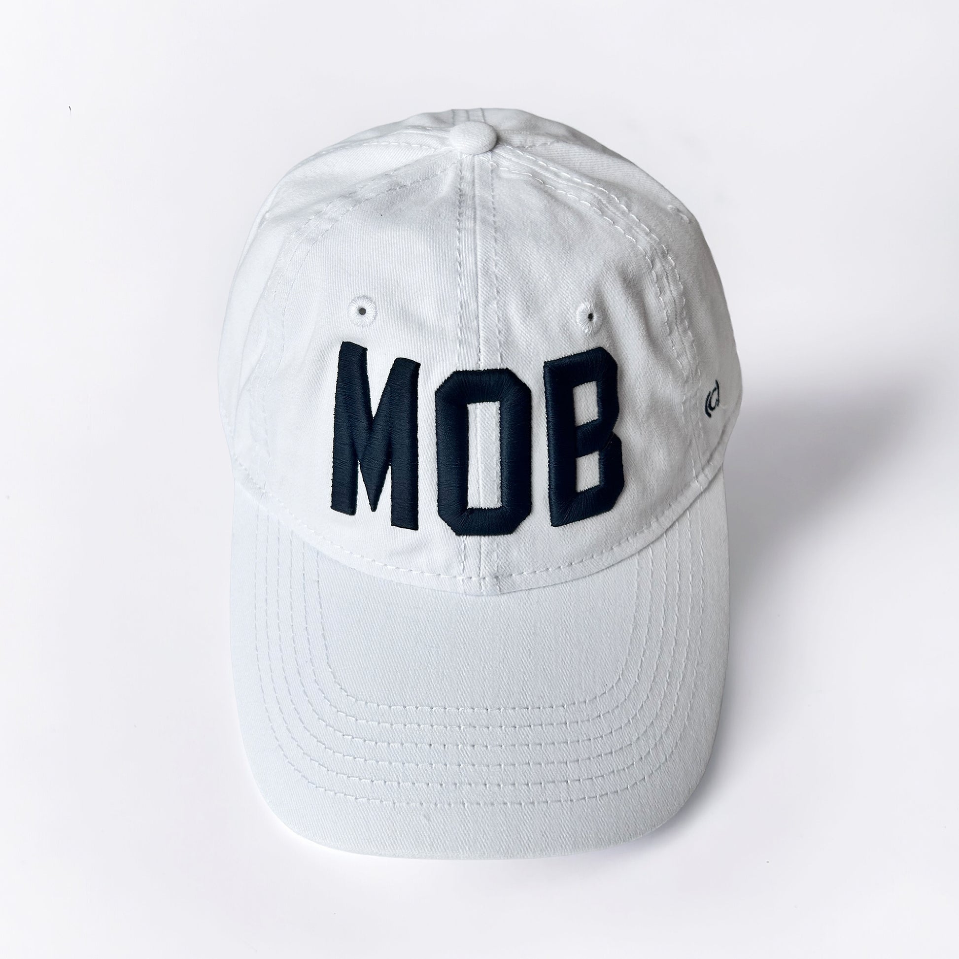 Sport your Mobile pride with our White and Black MOB Baseball Hat. Designed for both style and comfort, this classic cap features a timeless black and white color scheme, making it a versatile addition to any wardrobe.