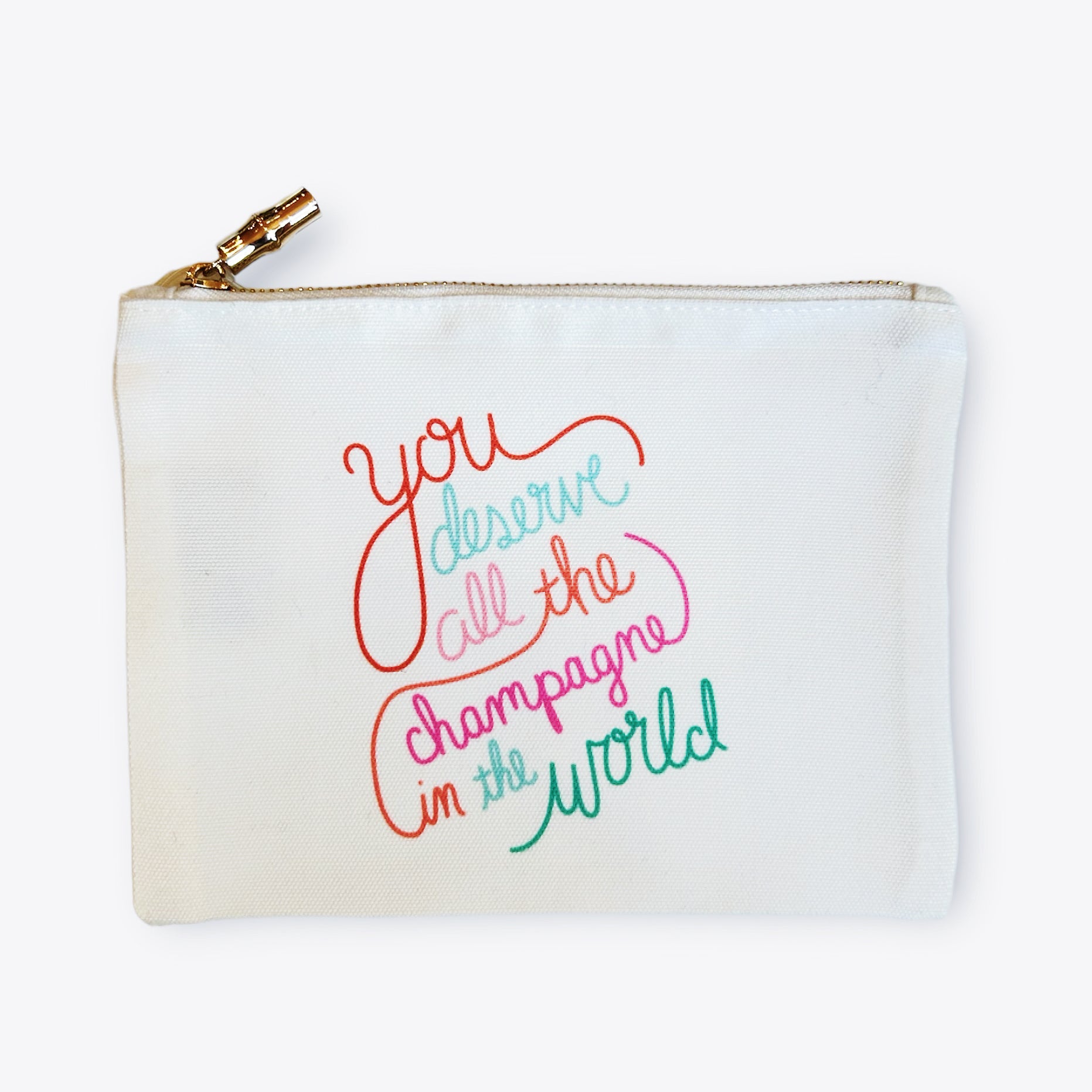 Indulge in the allure of our "You Deserve All The Champagne" zipper pouch, a tribute to sophistication and practicality. Adorned with a sparkling champagne bottle design, this pouch combines luxury with everyday functionality.